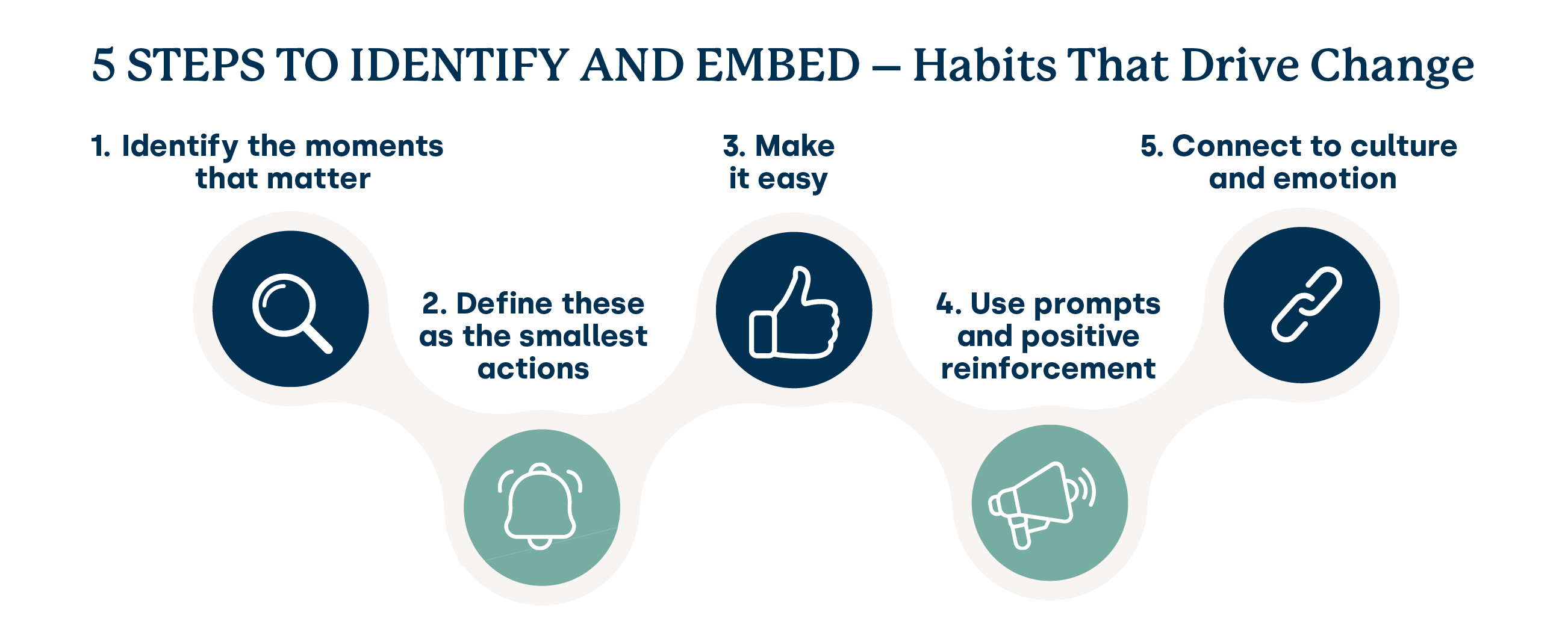 Solutions might include things like action lab workshops, an online portal, AI coaching tools, learning resources, peer sharing via video or podcast, and lots more besides. Where possible, we leverage existing channels of communication, learning and leadership for efficiency.